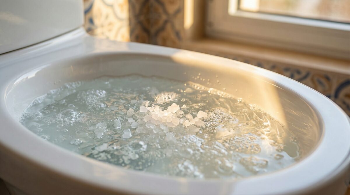 Grazie al sale, il calcare si deposita meno e la manutenzione diventa più semplice. Così, il WC dura più a lungo e resta bello da vedere. Un trucco antico che funziona ancora oggi.
